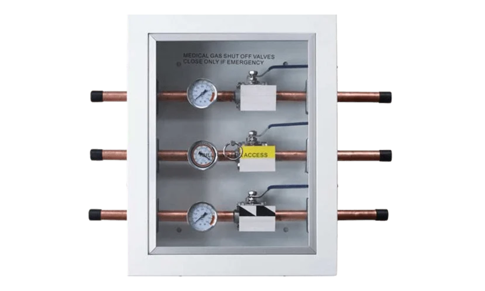A medical gas valve box, commonly referred to as a zone valve box, is a wall-mounted enclosure that houses shut-off valves for different medical gases supplied to specific zones within a healthcare facility. Installed in accessible locations such as corridors or technical areas, these valve boxes allow authorized personnel to isolate gas flow to a particular zone without disrupting the entire pipeline network.